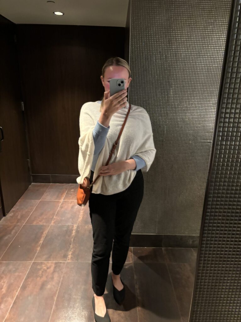 After getting ready I grabbed my coat and purse and walked over to the Museum of Modern Art. The rain had passed, but the gray skies remained along with cool breeze which made for a beautiful morning of walking around the city until the museum opened. Below was my outfit for the day.