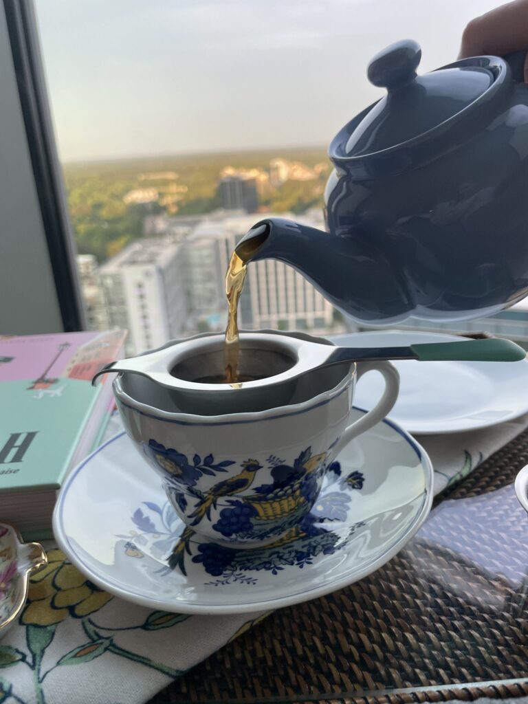 There may also be other things that you would like to incorporate into your tea time such as a dedicated tea table, a pretty tea strainer, a luxury tea or even a tea pot warmer that is used with a tea light candle. Curate the moment to be pleasing for your experience.